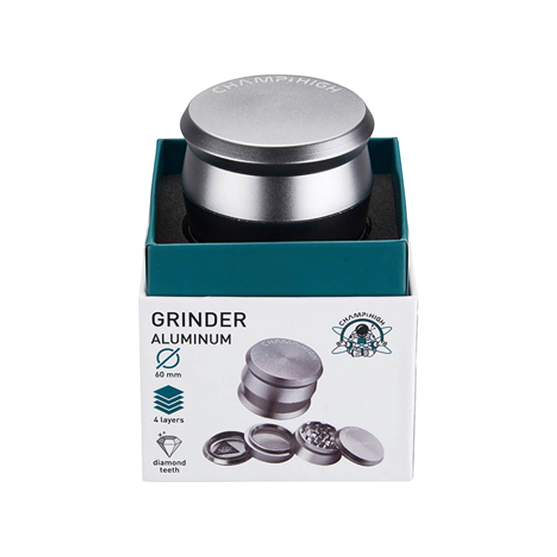 Grinder 'CHAMP HIGH' Silber | 4-teilig - 60mm.
